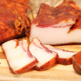 Slanina fiarta se unge cu usturoi pisat sau cu boia de ardei.